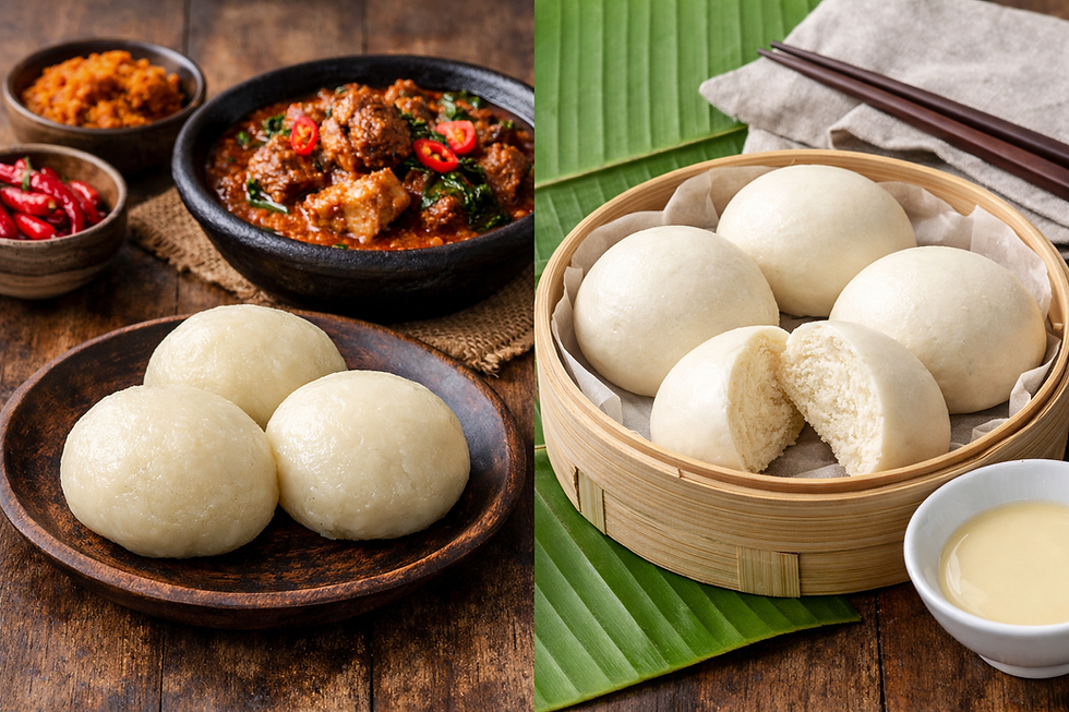 In molte regioni dell’Africa questo ruolo è svolto da preparazioni come il Fufu, una massa morbida ed elastica ottenuta da manioca o igname.